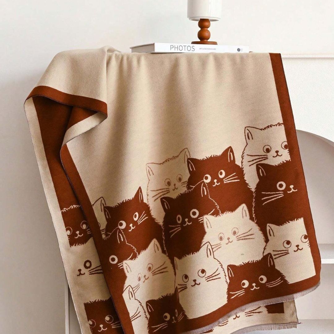 De söta kattansiktena gör den här sjalen till mer än bara ett plagg – det blir en bärbar personlig stilstatement.